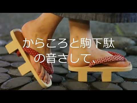 とて、ついと立つて椽《えん》がはへ出《いづ》るに、雲なき空の月かげ(17)涼しく、見おろす町にからころと駒下駄《こまげた》の音さして(18)、行《ゆき》かふ人のかげ分明《あきらか》なり。