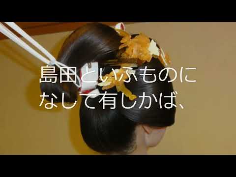 (10)高島田(髻の根を高く上げて結った島田まげ)。むかしは御殿女中などの髪形だったが、明治以降、花嫁の正装となった。平常は銀杏返しを結っていたが幾子の葬儀などのため髪型を改めていた。